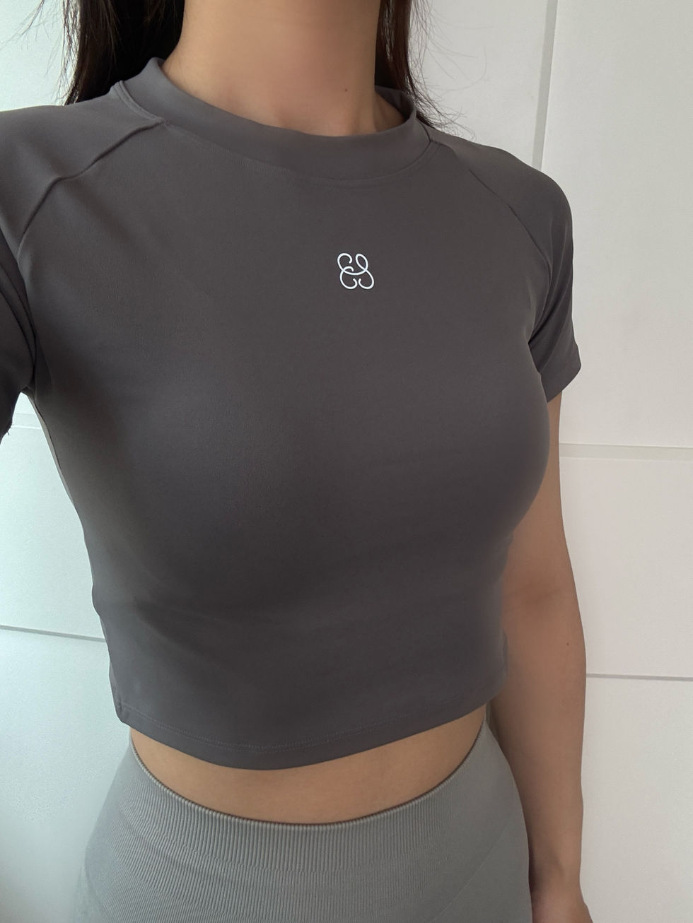 Cloud Crop Tee features a classic round neckline and a slim-fit design that enhances your silhouette, giving a flattering and sleek look.✨