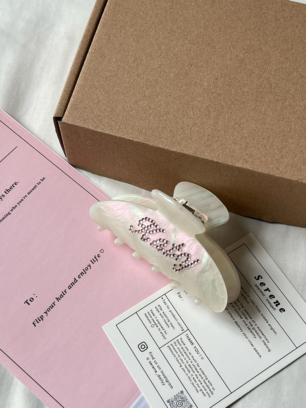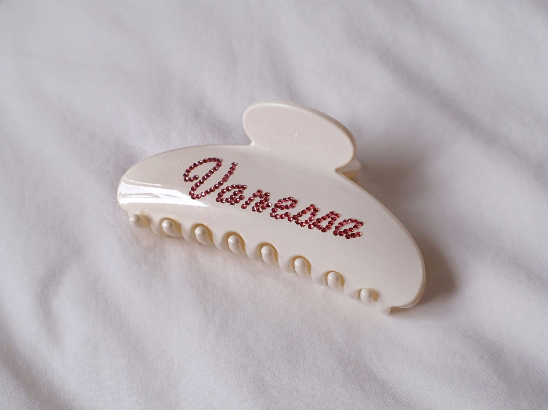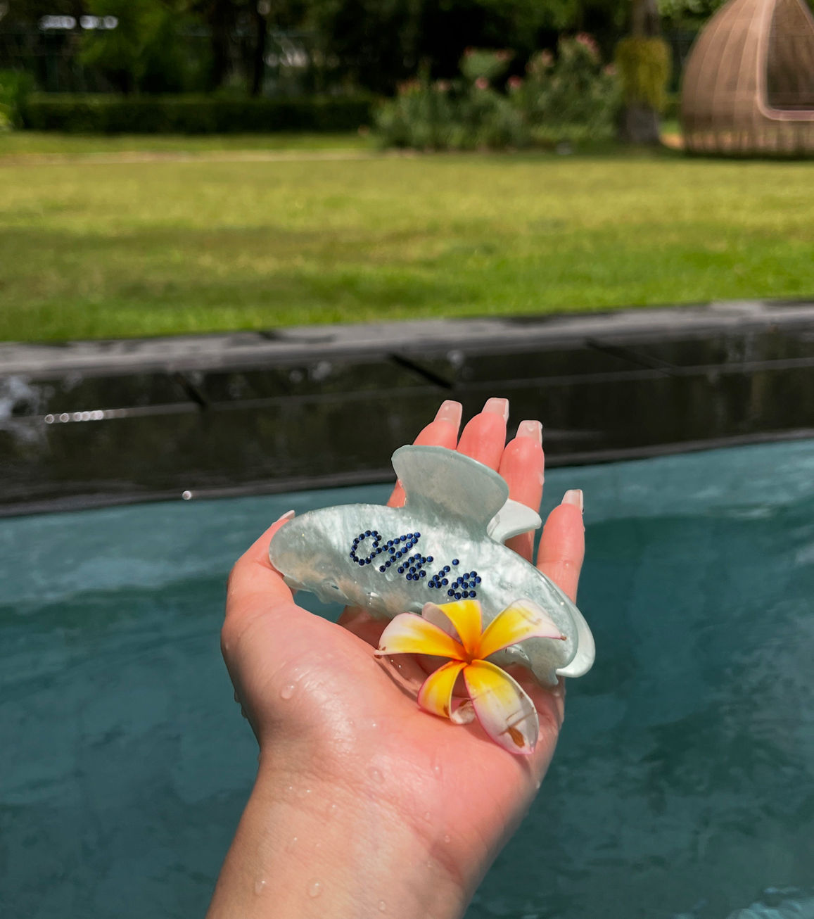 鯊魚夾絕對係日常必備單品!係平平無奇既髮型上夾返隻夾 造型感即刻提升‼️✨客訂名字髮夾獨一無二~加上閃石拼砌而成嘅名字 超級突出!🥹❤️🔥 店主實測過夾住呢隻夾行成日路都冇甩過!半紮髮/夾起唒啲頭髮都冇問題✨